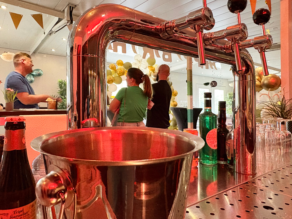 Alles is aanwezig: tapinstallatie, koeling, geluid, verlichting, meubilair, schermen en decor – klaar om meteen te gebruiken.